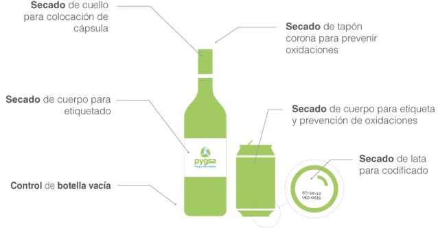 El secado de envases es un paso vital que influye directamente en la calidad del producto, la seguridad alimentaria y la imagen de la marca. Por ello, la elección de un sistema de secado adecuado y preciso es fundamental para garantizar que cada envase llegue al consumidor en perfectas condiciones. En este contexto, confiar en Pygsa significa contar con una tecnología avanzada y adaptada a las necesidades de cada cliente, maximizando la eficiencia, reduciendo costos y asegurando una calidad superior en cada etapa del proceso.